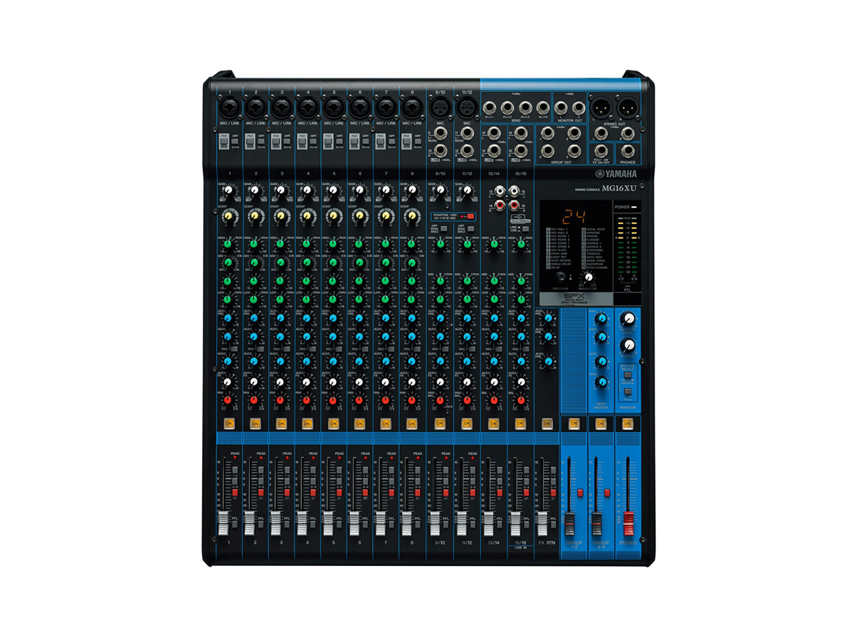 マイク入力10系統を装備する16chのコンパクトミキサー。 コンプレッサー、リバーブなどのエフェクト搭載で小規模ライブに最適です。