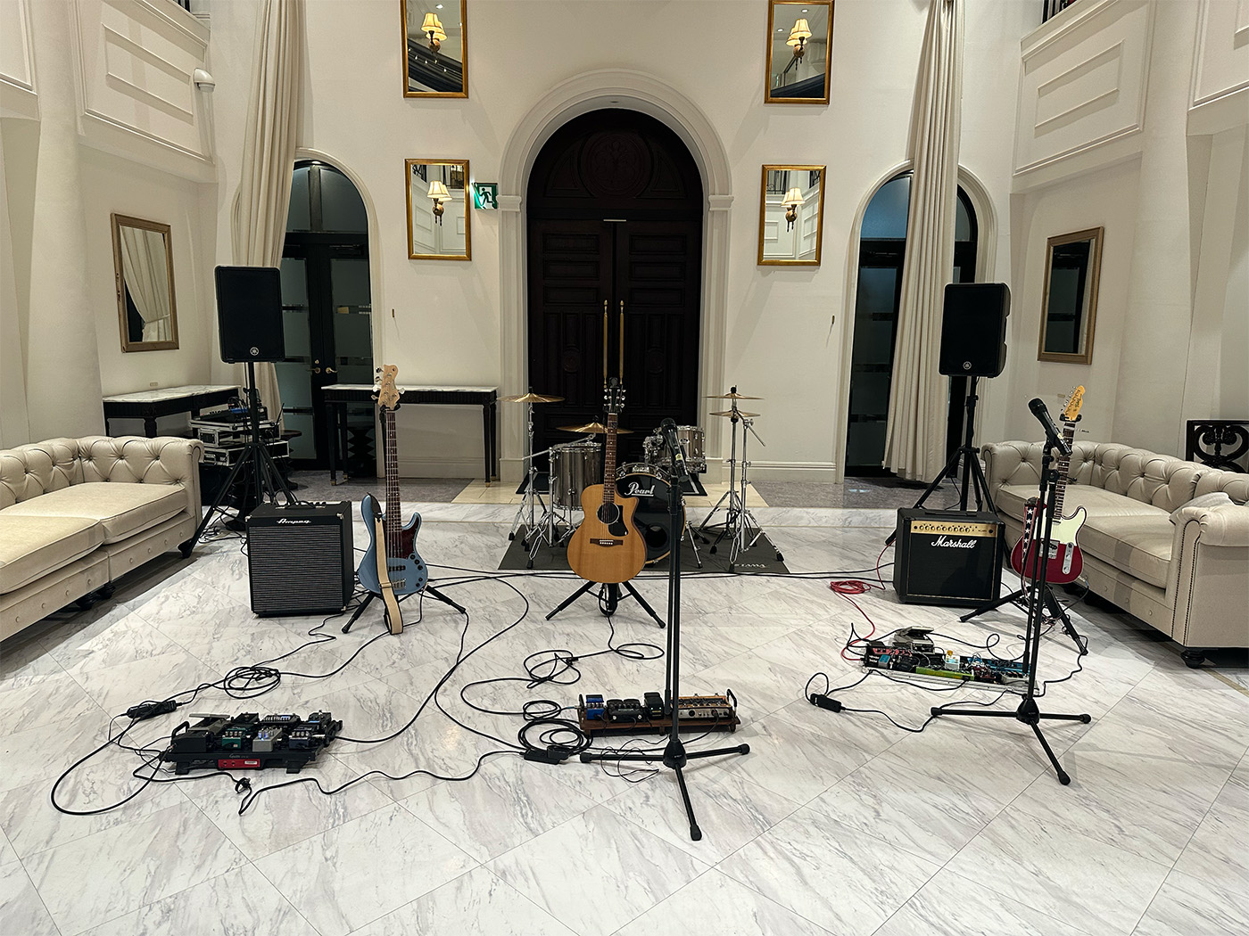 スケジュールはかなりタイトでしたが、設営をバンドメンバー様にお手伝いいただいたり、音出しも本番前の少しだけ行うことが出来ましたのでバランスの良い音量感でお届けすることが出来ました!
