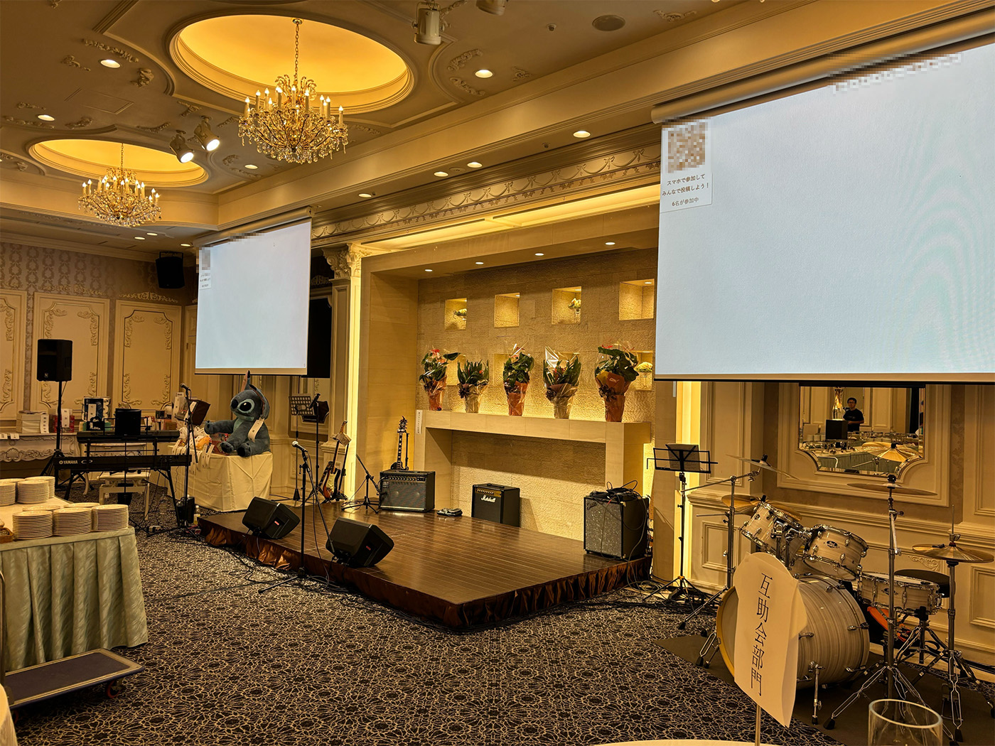 スピーカーからの出力はもちろんのこと、ドラムの音量はマイクを通さずとも迫力のある演奏で、お客様が会場に加わることで全体的にスッキリした音となりました!