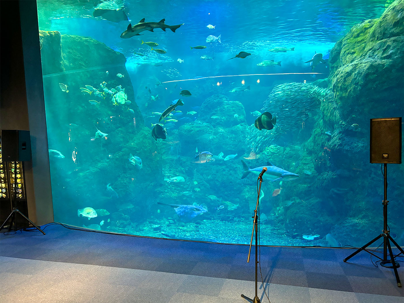 神奈川県藤沢市にある新江ノ島水族館にてPA&DJ機材一式をご利用いただきました!会場はクラゲやゆったり泳ぐ魚をイメージした、
