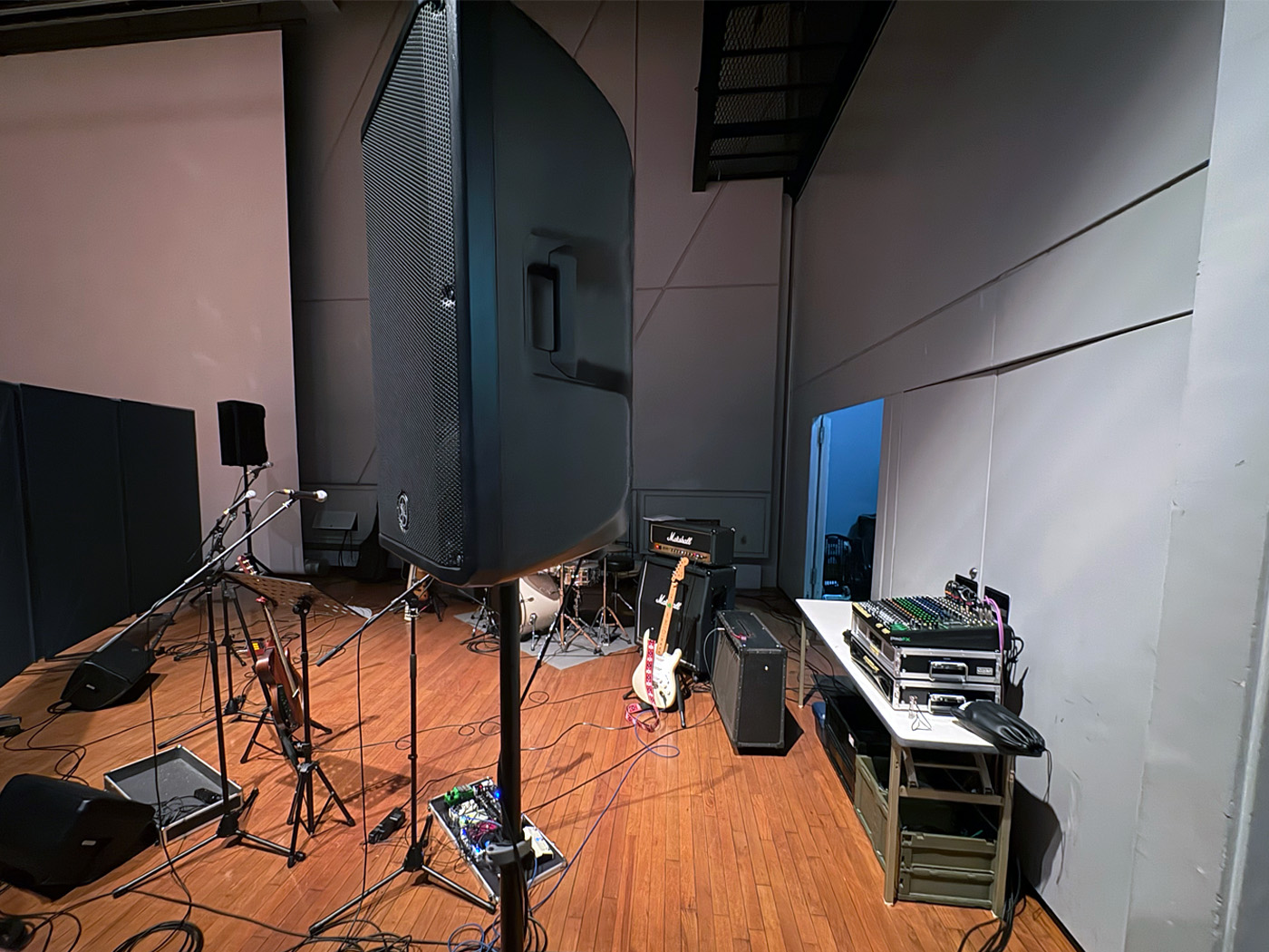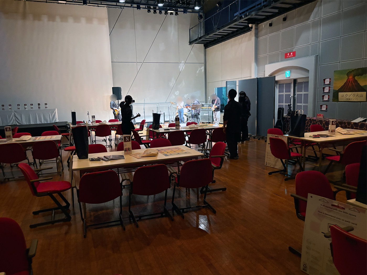 大きな会場でしたので全体に演奏が聞こえるよう、会場スピーカーからも音が出るように接続させていただきました。