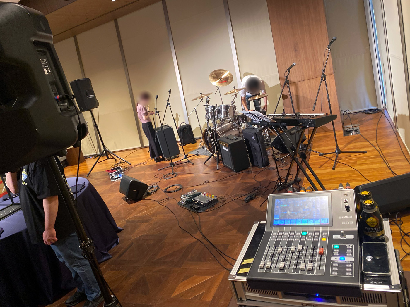 搬入からセッティングまでは1時間程度、リハーサルを含めると2時間半ほどでした。
