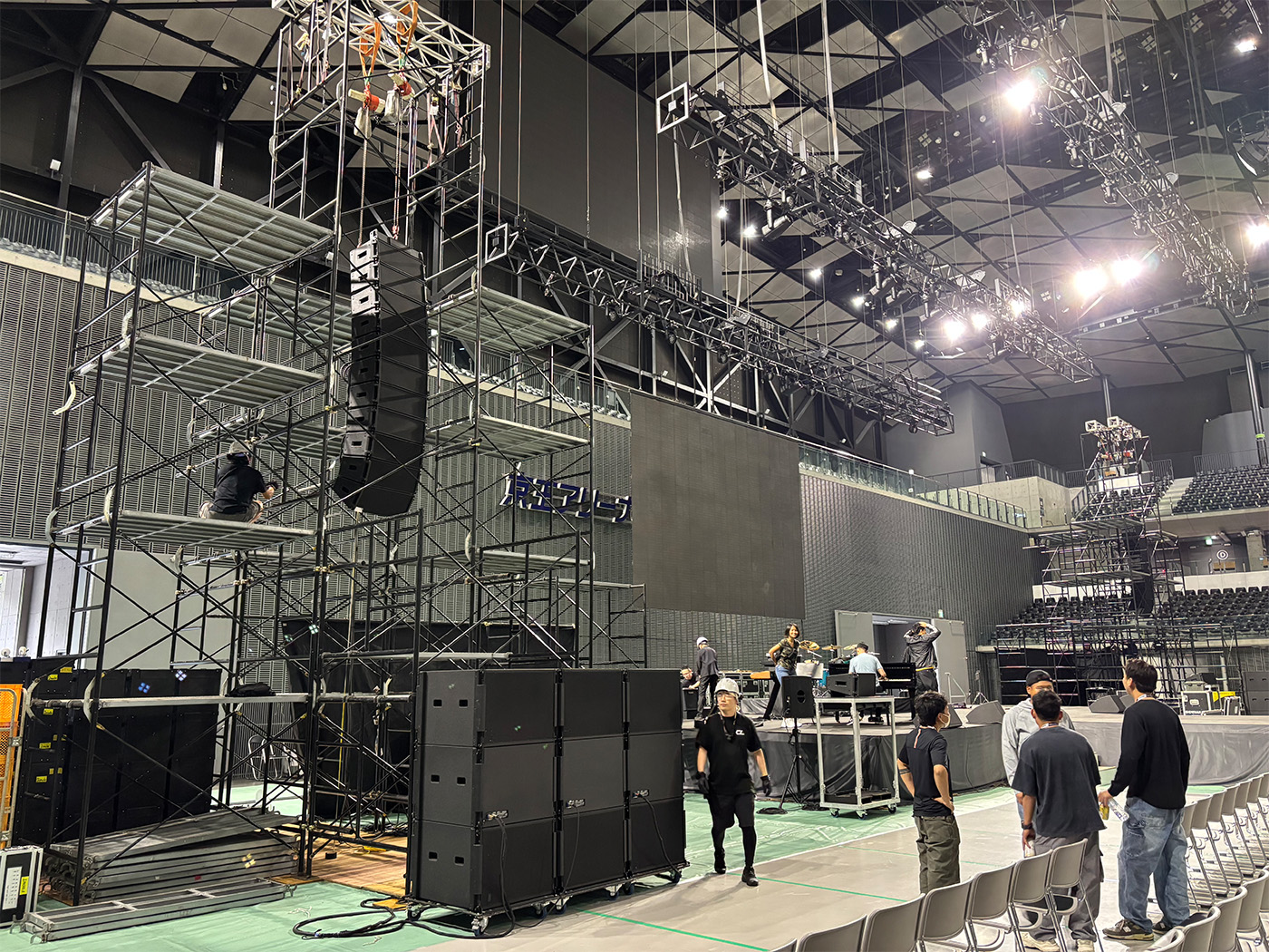 今回は収容人数1万人を誇る京王アリーナTOKYO(武蔵の森総合スポーツプラザ)にて行われた海外アーティストのライブイベントにステージから音響・照明・楽器・映像など必要な設備の手配等のトータルプランニングを行なわせていただきました。