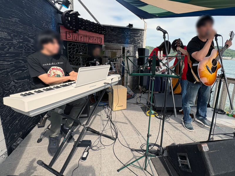 今回はボーカルマイク2本とお持ち込みの電子ピアノをPA卓に接続しました。
